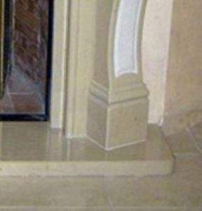 Rivestimento per caldaia su misura in pietra di Trani scalpellata e levigata con colonne e architravi sagomati e scolpiti