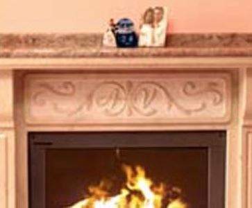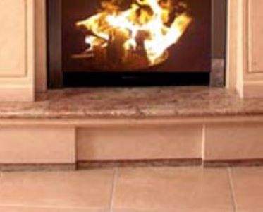 Rivestimento per caldaia su misura in pietra di Trani bocciardata e levigata con piani, alzatina e mensole in granito