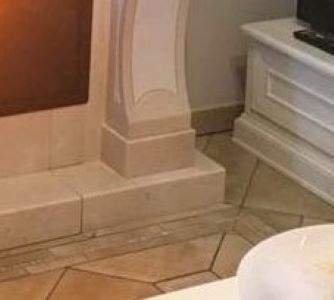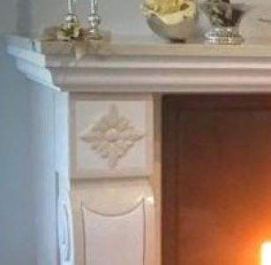 Rivestimento per caldaia su misura in pietra di Trani Bocciardata e levigata con colonne sagomate e disegni in rilievo