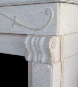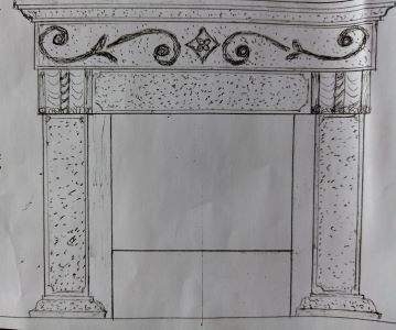 Rivestimento per caldaia su misura in pietra di Trani bocciardata e scalpellata e fasce levigate con disegno a rilievo