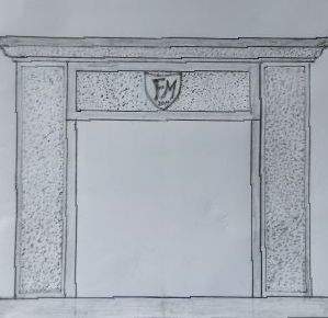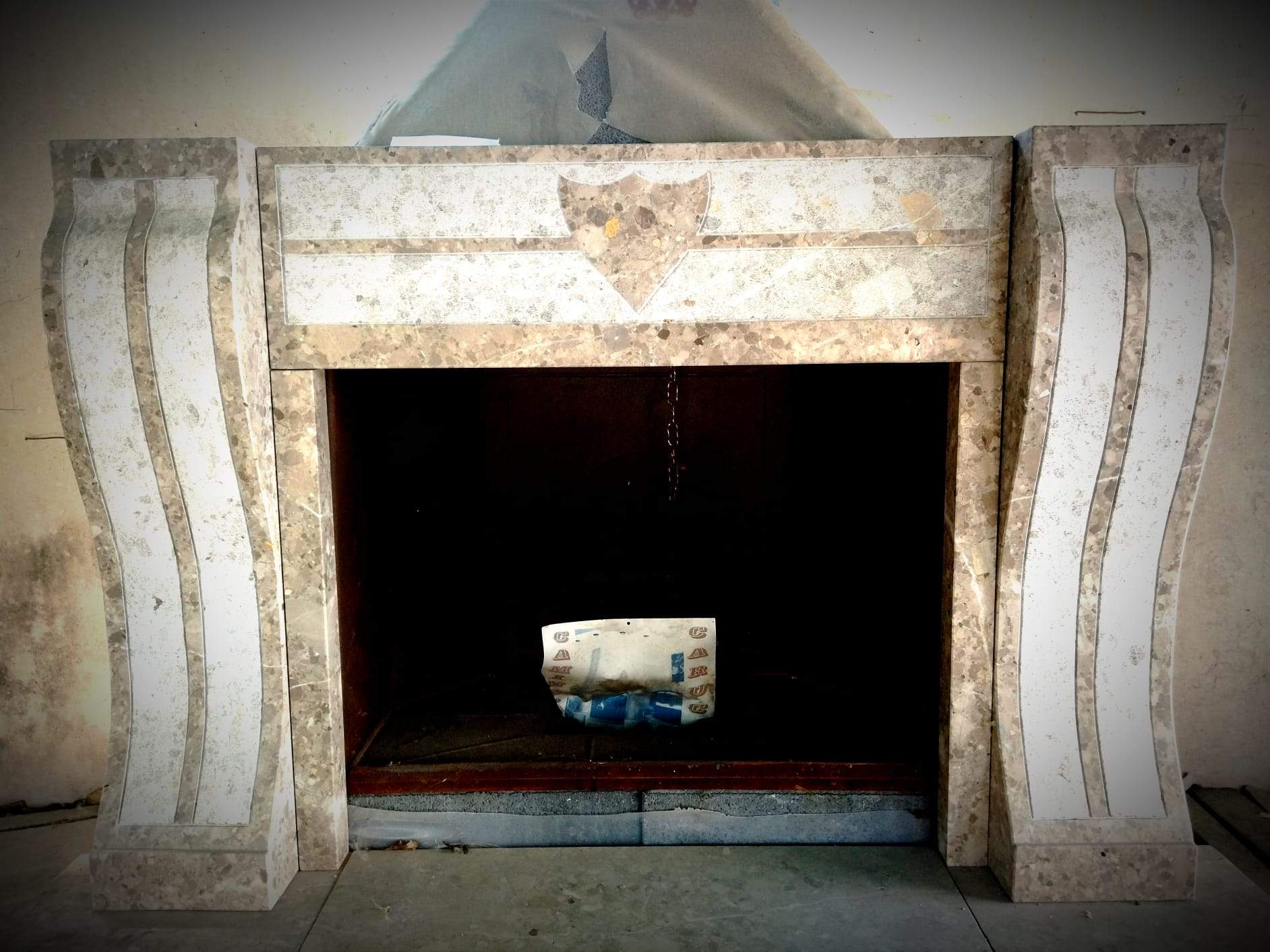 Caminetto in pietra Brecciata locale bocciardato e levigato con colonne sagomate