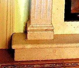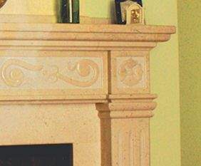 Rivestimento per caldaia su misura in pietra di Trani scalpellata e levigata con colonne scanalate e disegni a rilievo