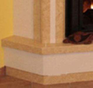 Rivestimento per caldaia su misura ad angolo in pietra di Trani levigata e bocciardata